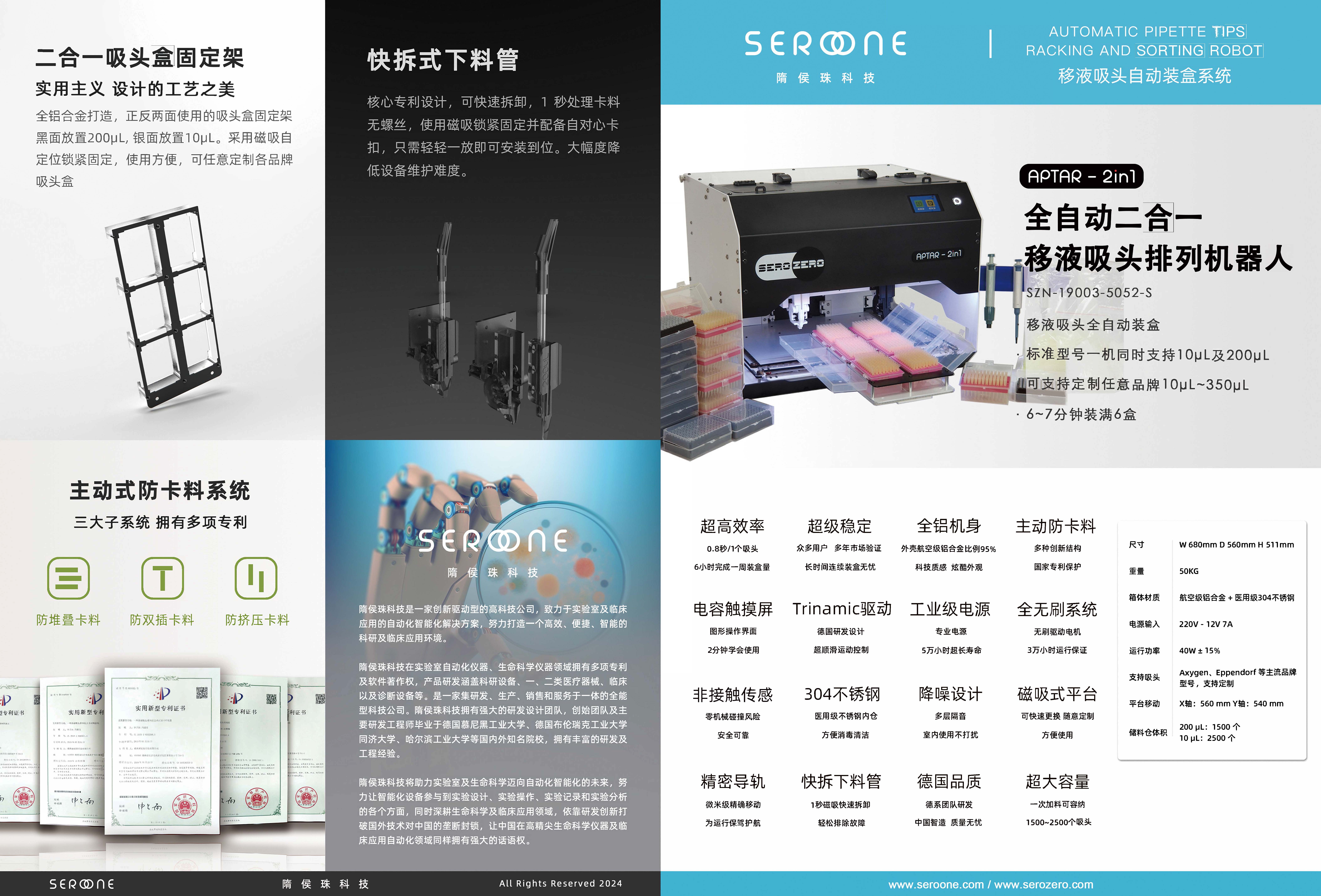 1. 二合一機型;在不更換硬件零件的情況下,一臺設備可同時支持排列兩種規格吸頭,標準機型為一機同時支持10ul和200ul吸頭;可支持匹配進口、國產等多種品牌吸頭,支持10ul/20ul/200ul/250ul/300ul/350ul吸頭中任意兩種規格定制。