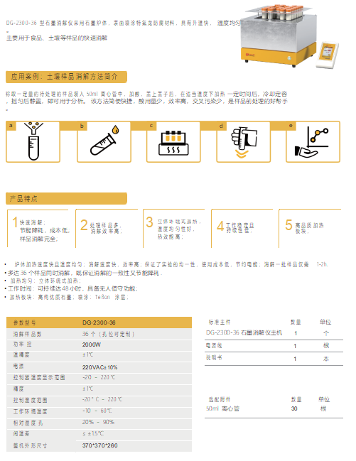 DG-2300-36型石墨消解儀采用石墨爐體,表面噴涂特氟龍防腐材料,具有升溫快,溫度均勻,節能,操作簡便等特