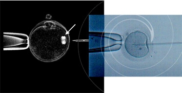 -以不具波壞性的方式,看到活體卵細胞的紡錘體, 執行I C S I或核轉移